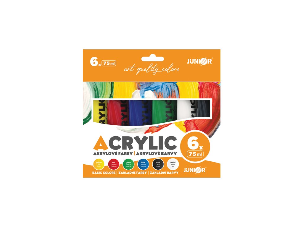 Akrylové farby JUNIOR 75 ml - 6 ks sada Basic