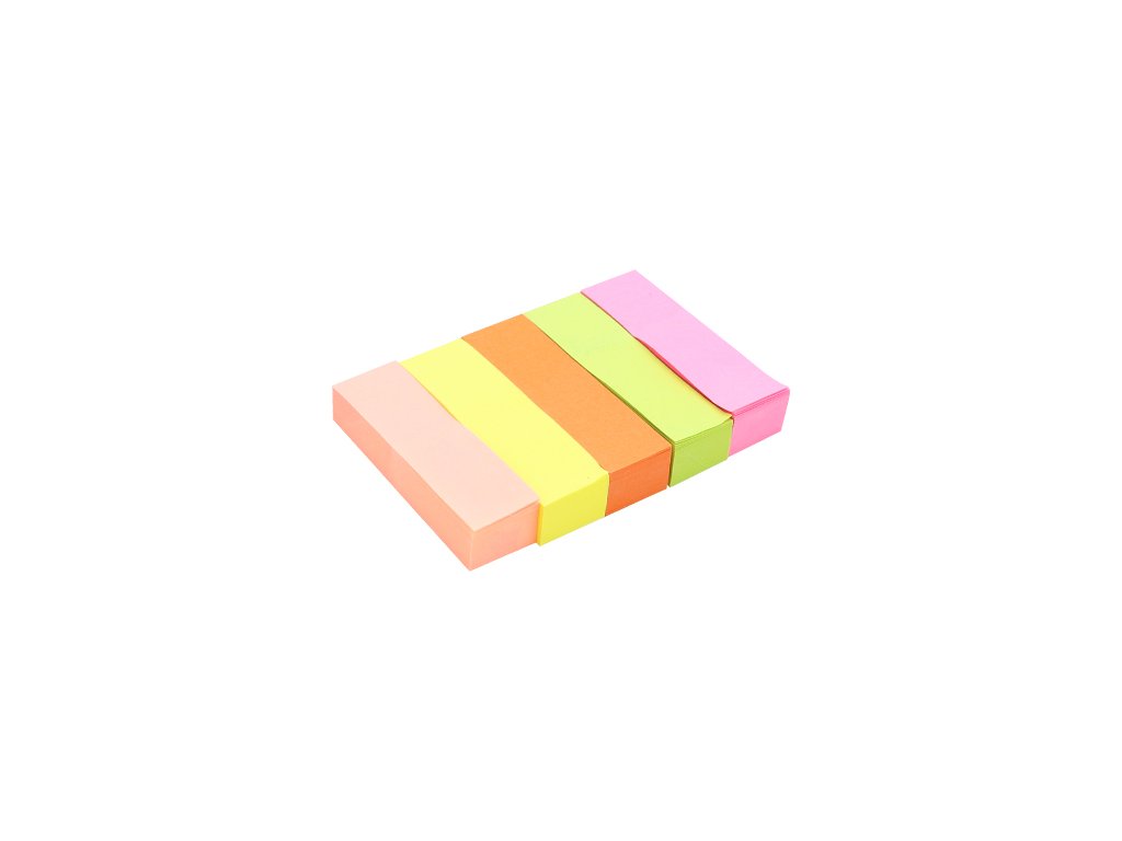 Samolepiace záložky z papiera do kníh, časopisov, alebo ako register do cenníkov v piatich neónových farbách. Lepidlo umožňuje opakované použitie lístkov, pričom nezanecháva stopy.Dodatočné parametre