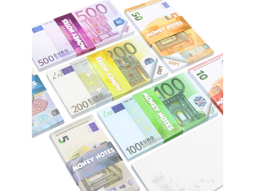 Trhací notes s EURO bankovkou obsahuje 70 listov s linajkami na písanie.