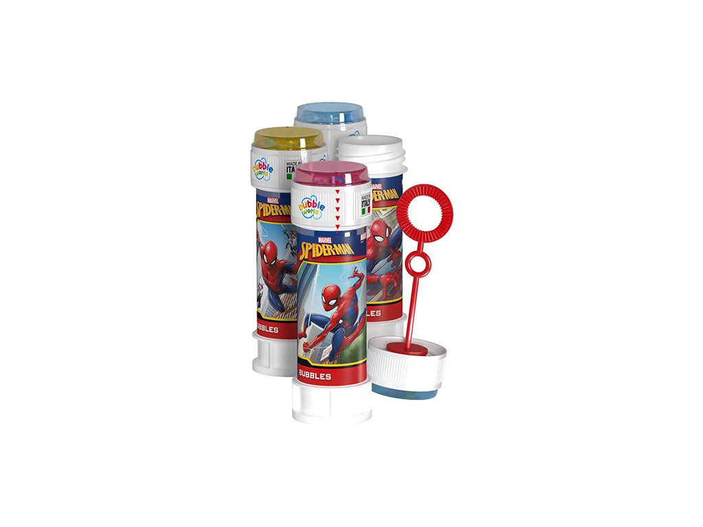 Bublifuk s rozprávkovým motívom Spider-man 60 ml. Bublifuk má bezpečné uzatváranie, fúkaciu paličku a hru na vrchnáku.
