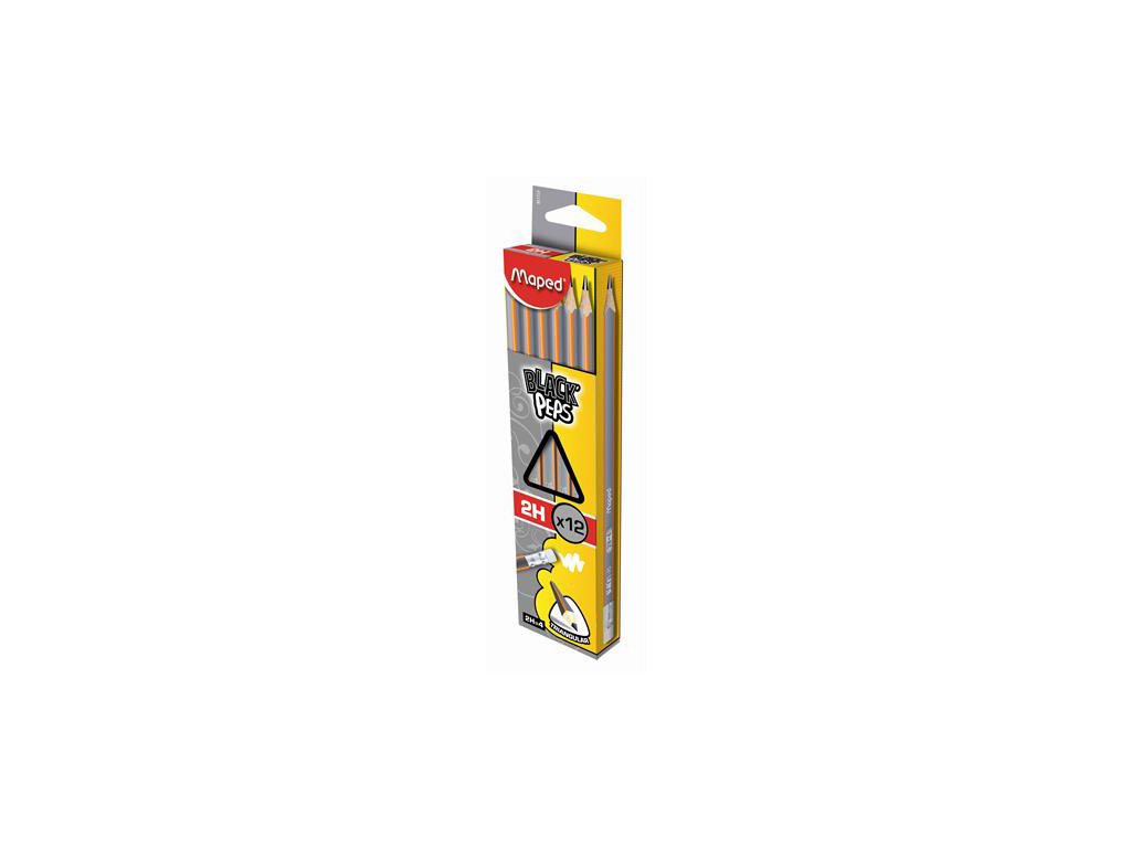 Ceruzka grafitová MAPED "BLACK'PEPS" 2H . Drevená lakovaná ceruzka. Ergonomické trojhranné telo pre pohodlné držanie. Vysoko kvalitná nelámavá tuha. Ľahko strúhateľná. Exkluzívny dizajn. Šírka stopy 2,2 mm. Francúzka značka MAPED zaručuje vysokú kvalitu, funkčnosť a moderný dizajn.Dodatočné parametre