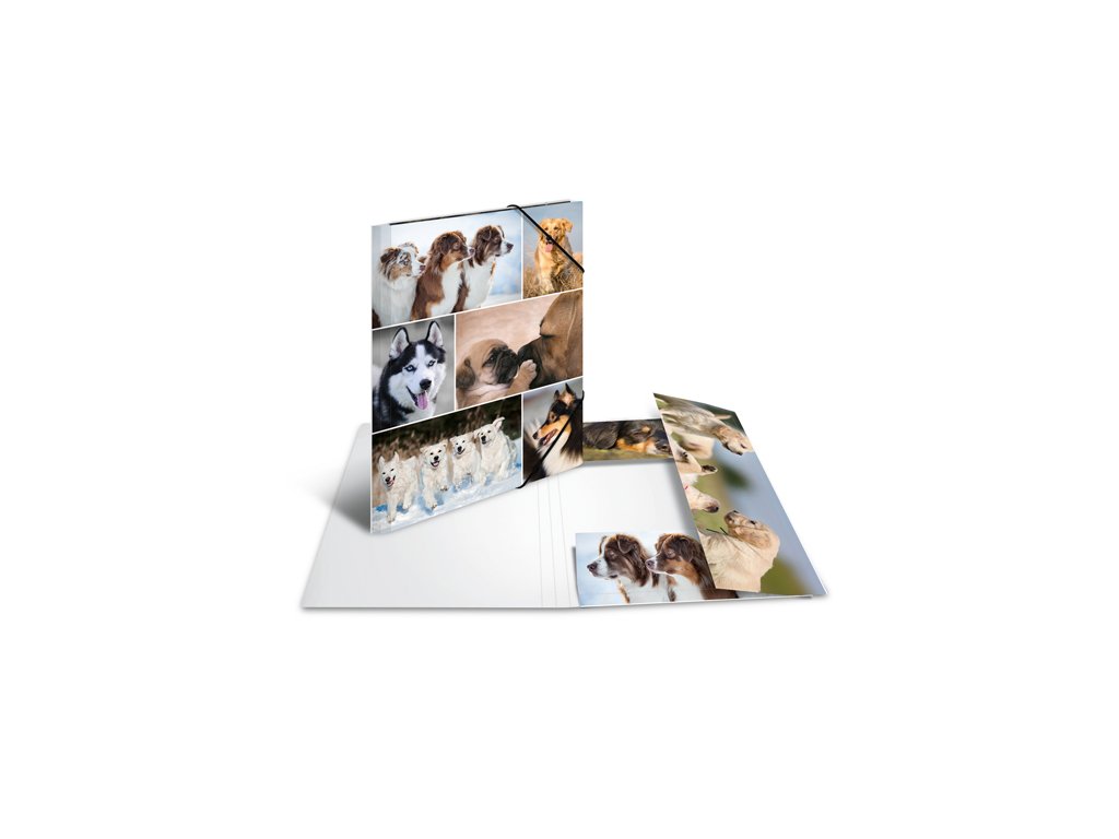 Doska s gumičkou s motívom psov vhodná na uskladnenie dokumentov, výkresov, učebníc či zošitov, ktoré vďaka pevnému telu dosky budú chránené pred poškodením.Dodatočné parametre