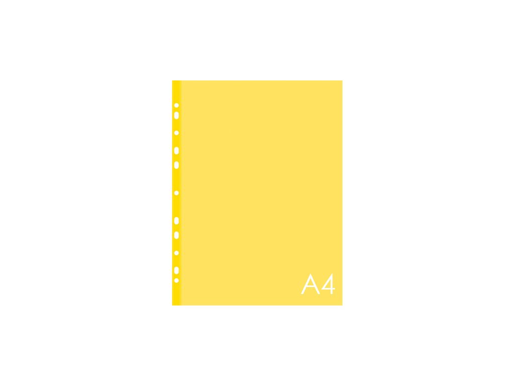 Polypropylénové priehľadné zakladacie euroobaly s hladkou povrchovou úpravou, otvor zhora, s europerforáciou, formát A4, farba žltá, 100 ks v balení.Dodatočné parametre