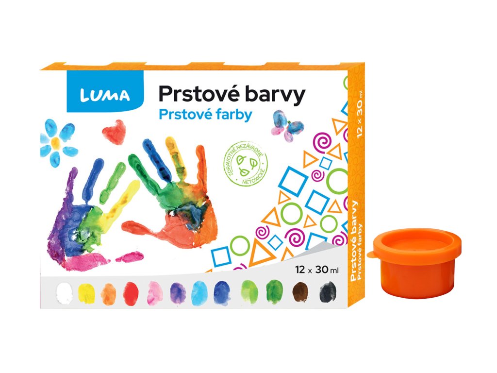 Prstové farby LUMA v sade 12 výrazných odtieňov prinášajú deťom zábavu a kreativitu pri maľovaní prstami, štetcom či hubkou.