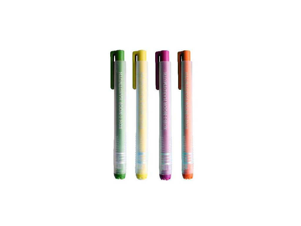 Vysúvateľná guma v tvare pera v plastovom obale (rôzne farby).