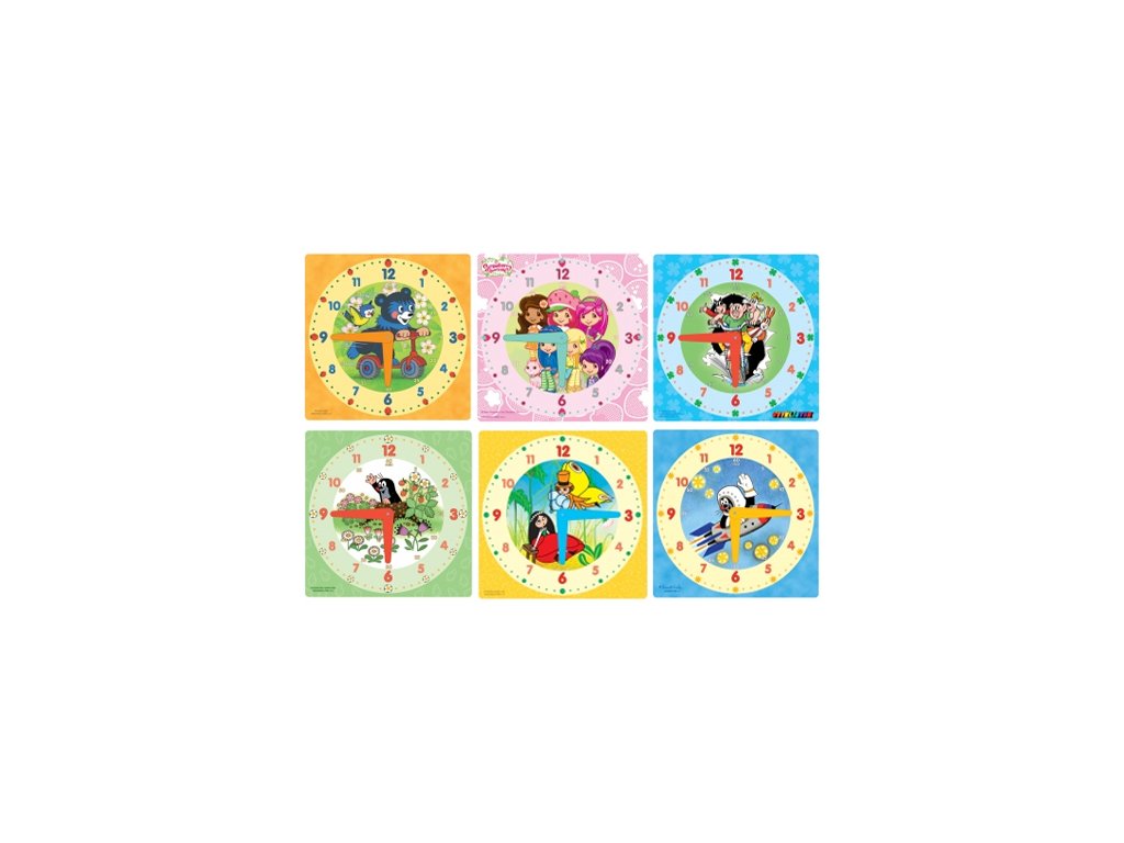 Školské hodiny 21x21 cm, rôzne farebné prevedenia a motívy, v papierovom prevedení.