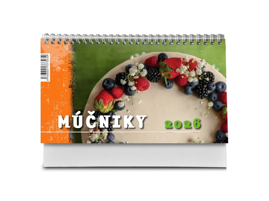 Stolový dvojtýždenný kalendár, s listami zo 115g natieraného papiera, viazaný kovovou bielou špirálou. Rozmer: 234x133 mm
