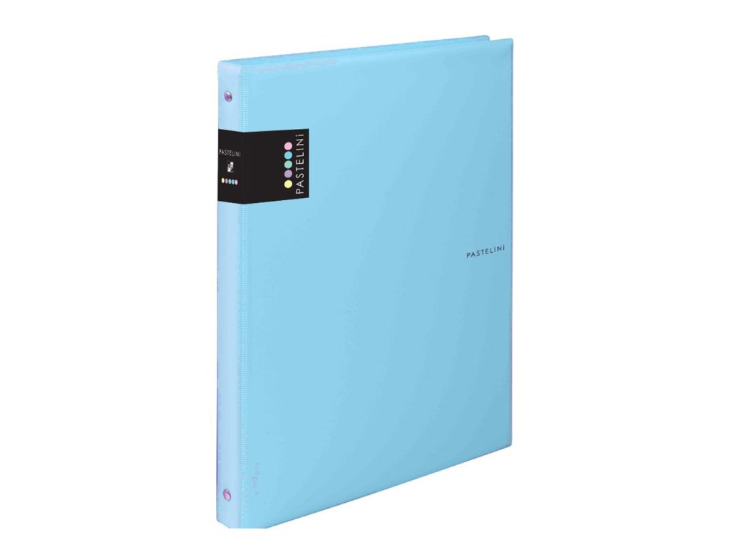 Blok v moderných pastelových farbách s krúžkovou mechanikou, formát A4, 100 linkovaných listov, vnútorná zakladacia zložka. Farba: modrá.