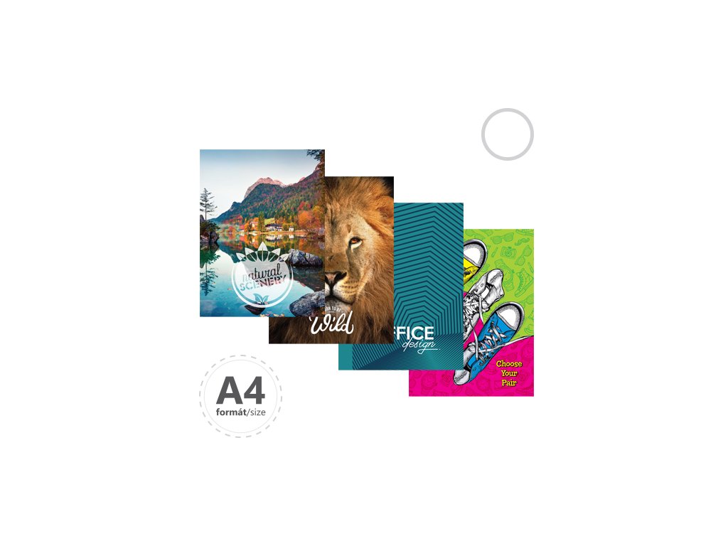 Záznamové knihy A4 sú vyrobené z bezdrevného písacieho papiera. Obálka je vyrobená z tvrdého kartóna, ktorý je potlačený rôznymi farebnými motívmi a potiahnutý laminom. (4 dizajny). Čistá - 96 listová.Dodatočné parametre