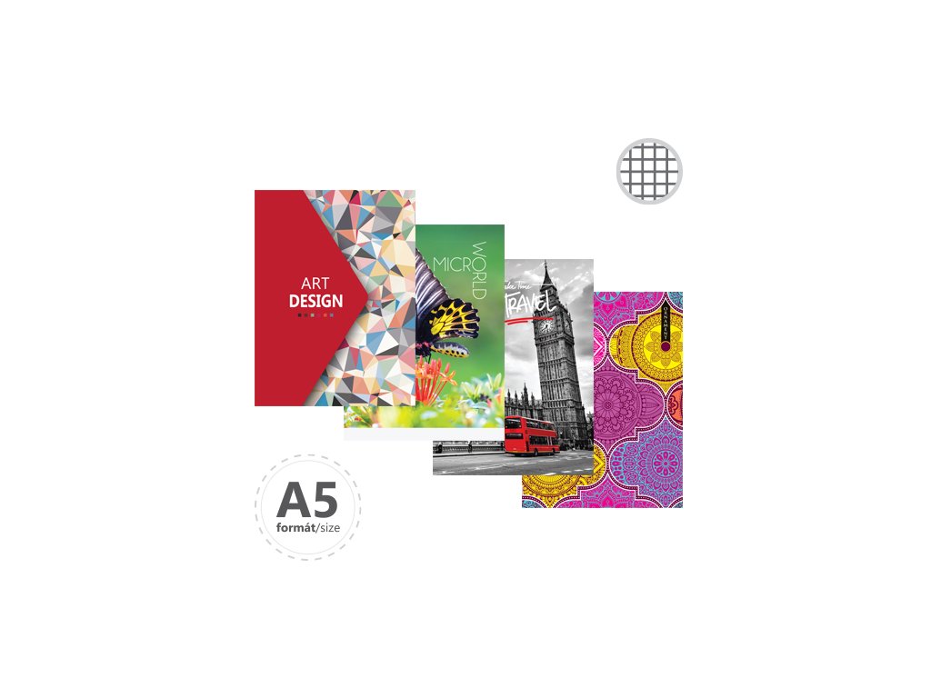 Záznamové knihy A5 sú vyrobené z bezdrevného písacieho papiera. Obálka je vyrobená z tvrdého kartóna, ktorý je potlačený rôznymi farebnými motívmi a potiahnutý laminom (8 dizajnov). Štvorčeková - 96 listov.Dodatočné parametre