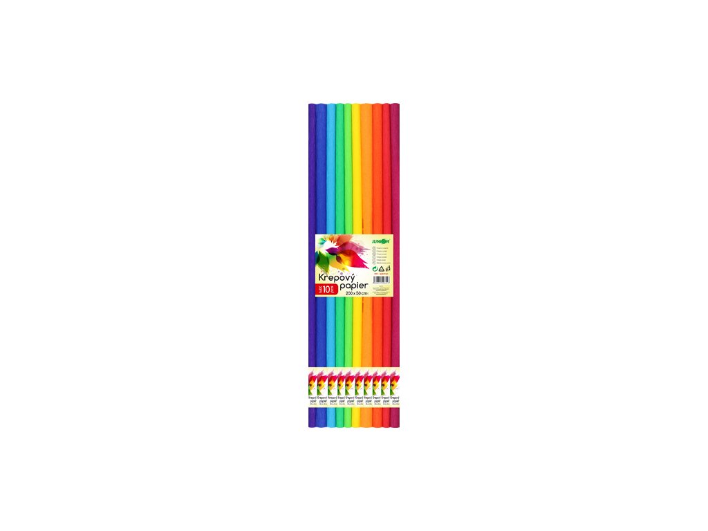 Krepový papier, dodávaný v návine, rozmer 50 x 200 cm, sada 10 ks - farebný mix. Má široké použití pro školní, výtvarné a aranžérské práce.