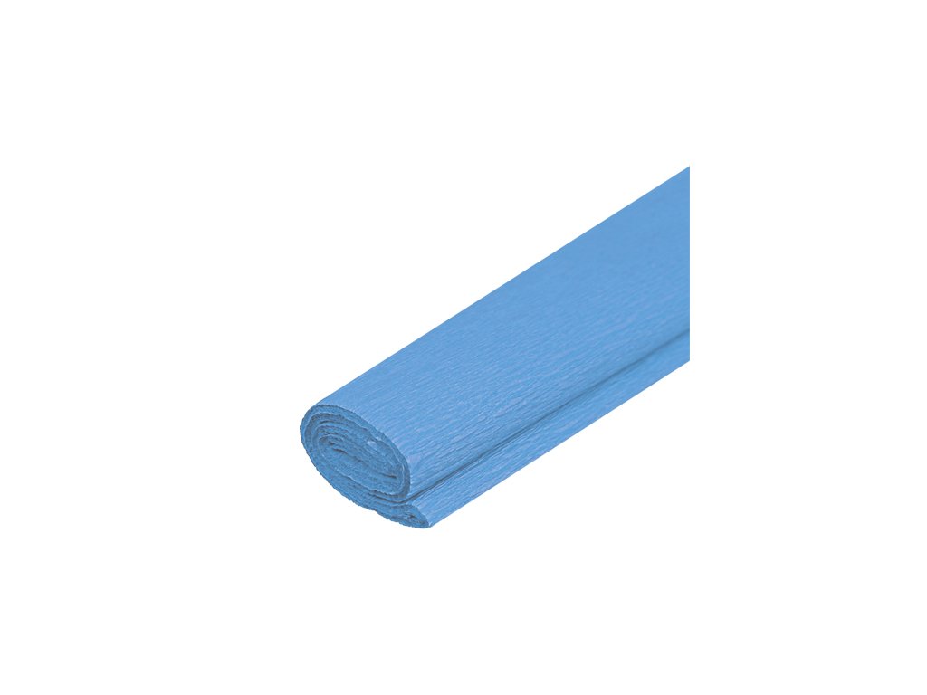 Krepový papier, dodávaný v návine, rozmer 50 x 200 cm, farba svetlo modrá. Má široké použitie pre školské, výtvarné a aranžérske práce.