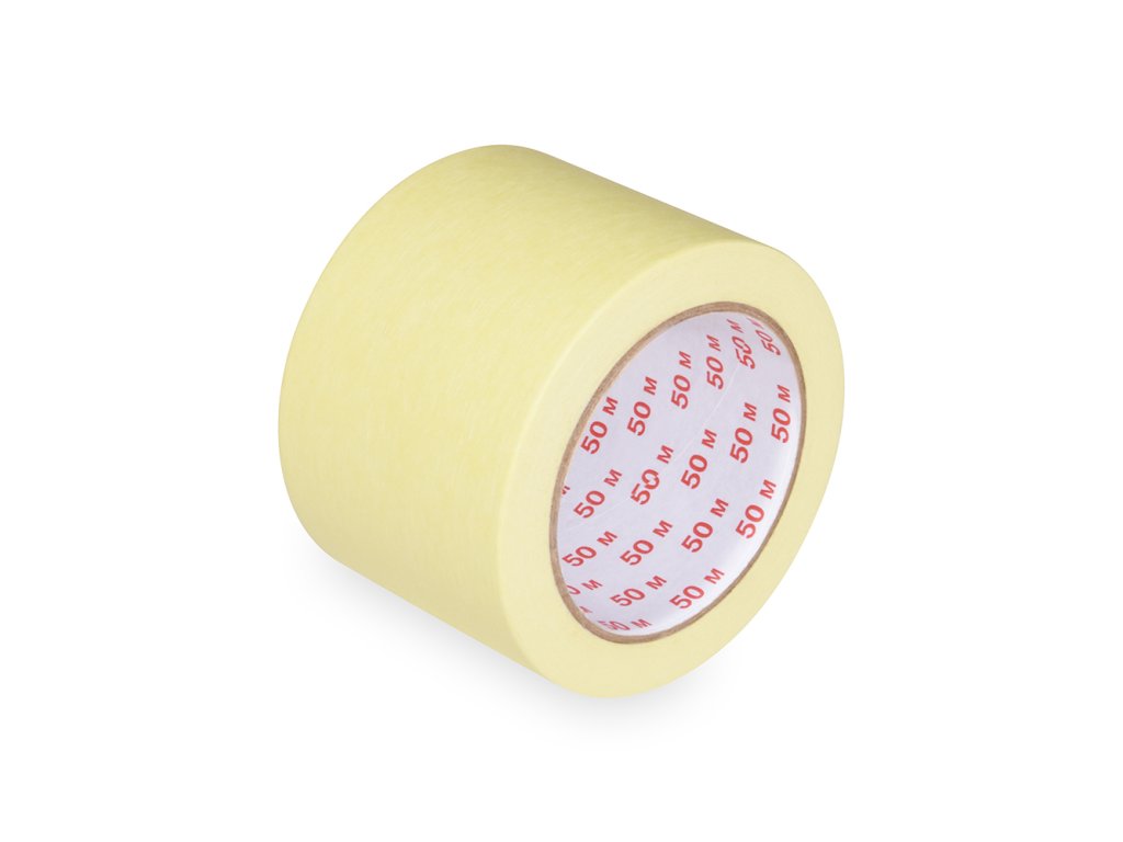 Lepiaca páska krepová žltá; šírka 75 mm, dĺžka návinu 50 m; dodávaná jednotlivo alebo v balení po 16 ks.