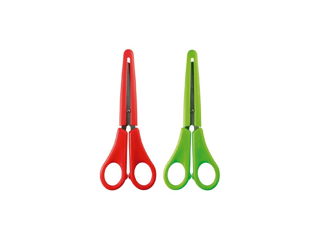 Nožnice s puzdrom zodpovedajúcim rukoväti. Čepeľ z nehrdzavejúcej ocele so zaobleným hrotom a 5 cm pravítkom. Plastová rukoväť. Ideálne pre použitie v škole. Dostupné farby: žltá, modrá, červená a zelená. 14,7 cm. Viacnásobný predaj: 10 najrôznejších jednotiek.Dodatočné parametre