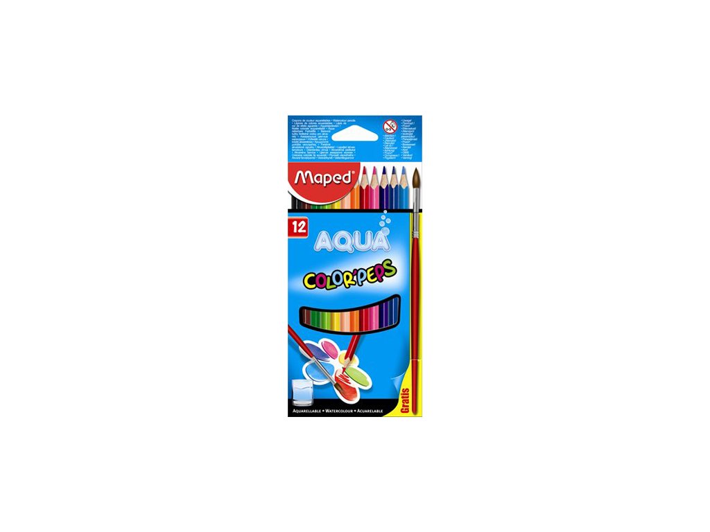 Súprava vodou rozmývateľných farebných ceruziek v puzdre. Trojhranné telo, mäkká a odolná tuha, jasné farby. Nanesením malého množstva vody priloženým štětcom vytvoríte efekt vodovej farby. Francúzka značka MAPED zaručuje vysokú kvalitu, funkčnosť a moderný dizajn. Balenie obsahuje 12 ks + štětec.Dodatočné parametre