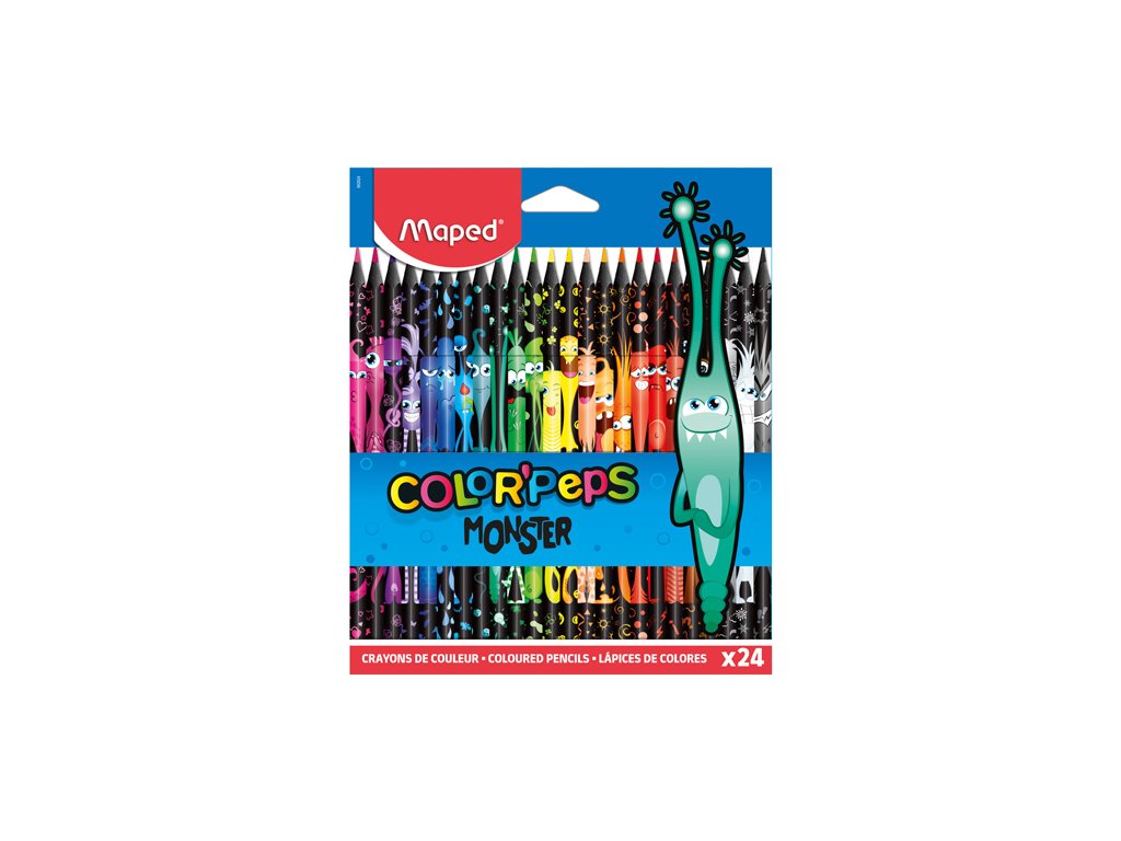Pastelky trojhranné MAPED "COLOR'PEPS MONSTER". Výborná krycia schopnosť. Pohodlne sa držia. Tuhy sú odolné proti lámaniu. ľahko sa strúhajú. Trojuholníkový tvar ponúka ľahké uchopenie a je ideálny pre deti, ktoré sú nadšené umením, ktoré chcú kresliť, vyfarbovať, zdobiť a obohatiť svoje kresby. Balenie obsahuje 24 ks.Dodatočné parametre
