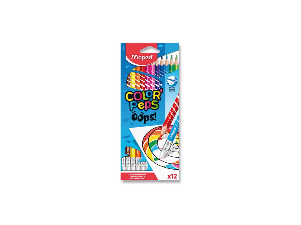 Pastelky trojhranné MAPED "COLOR'PEPS OOPS" s gumou. Výborná krycia schopnosť. Pohodlne sa držia. Tuhy sú odolné proti lámaniu. ľahko sa strúhajú. Trojuholníkový tvar ponúka ľahké uchopenie a je ideálny pre deti, ktoré sú nadšené umením, ktoré chcú kresliť, vyfarbovať, zdobiť a obohatiť svoje kresby. Balenie obsahuje 12 ks.Dodatočné parametre