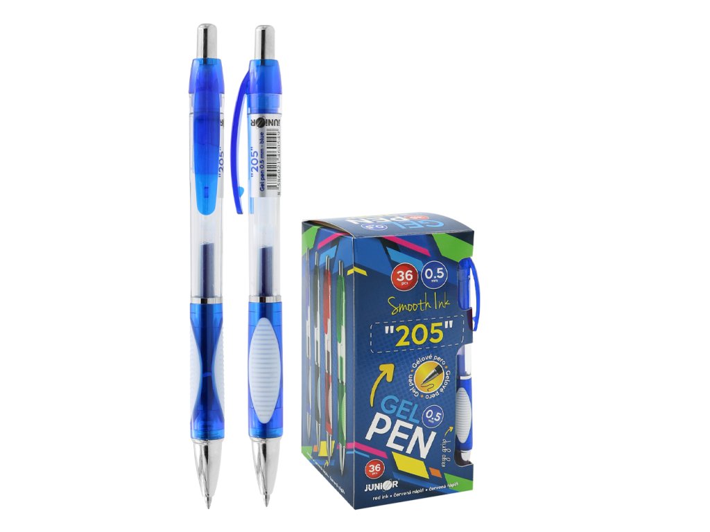 Gélové pero s transparentným telom a ergonomicky tvarovaným gumovým úchopom.