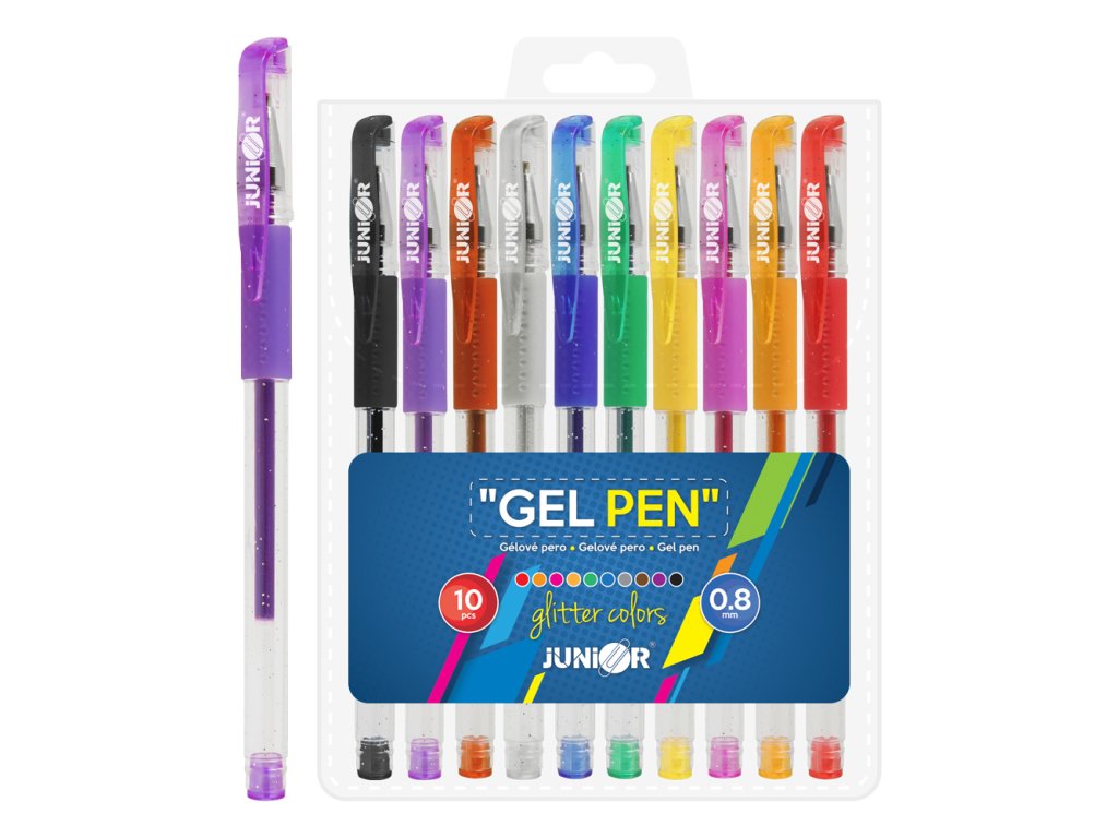 Pero gélové - sada 10 ks JUNIOR, Glitter