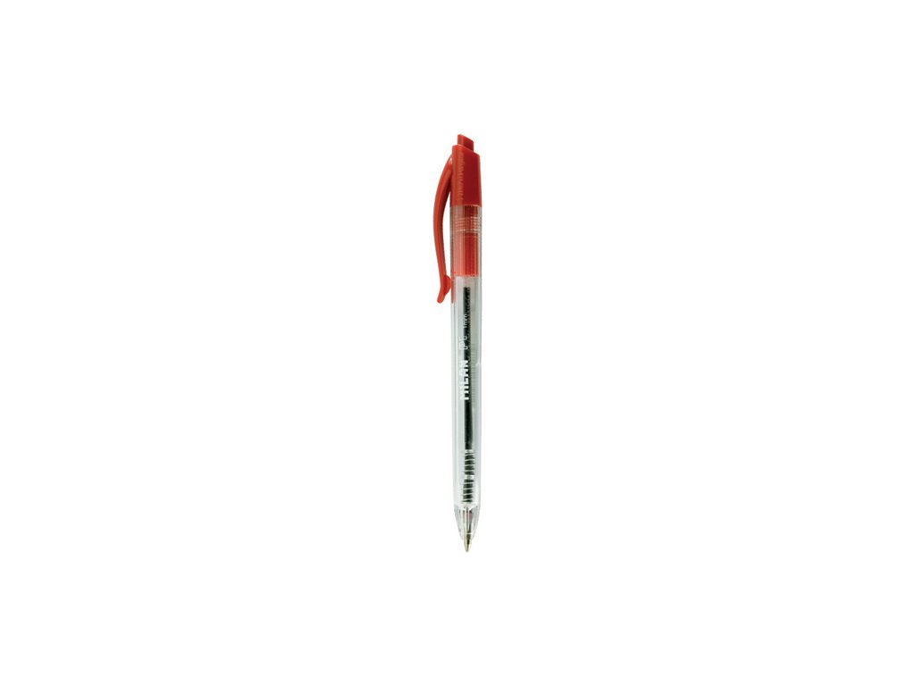 Guľôčkové pero P1 s kvalitným atramentom. Transparentné plastové telo s farebným stláčacím mechanizmom. Plynulé a jemné písanie. Farba náplne zodpovedá farbe pera. Náhradná náplň, kód: 05108, červená.Dodatočné parametre