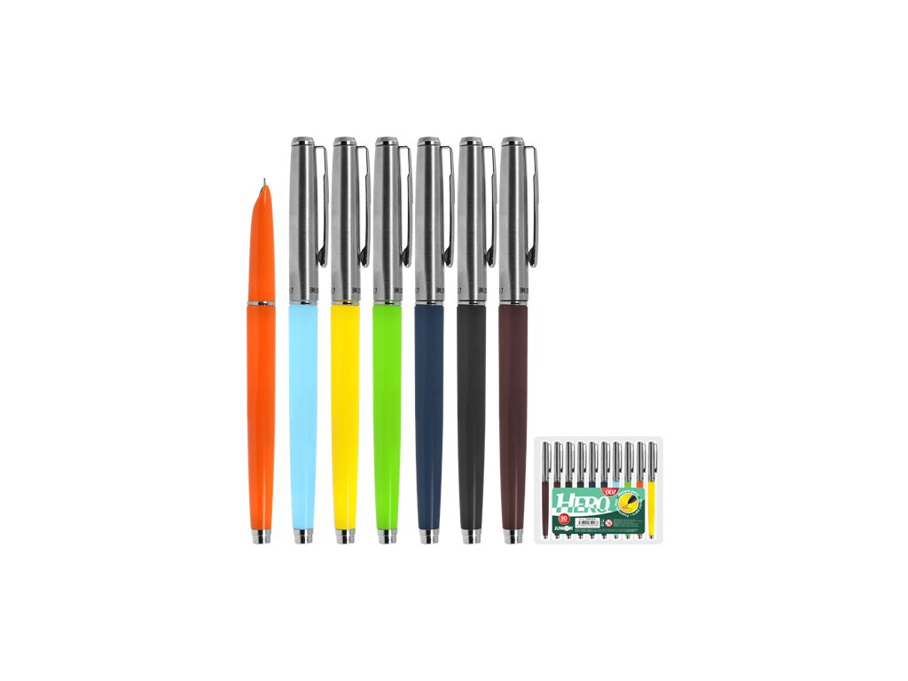 Plniace atramentové pero, ktoré sa nazýva ,,HERO". Predáva sa v štyroch žiarivých farbách, ale zároveň aj v troch ekonomických farbách. Uzáver je z kovu a v striebornej farbe.Dodatočné parametre