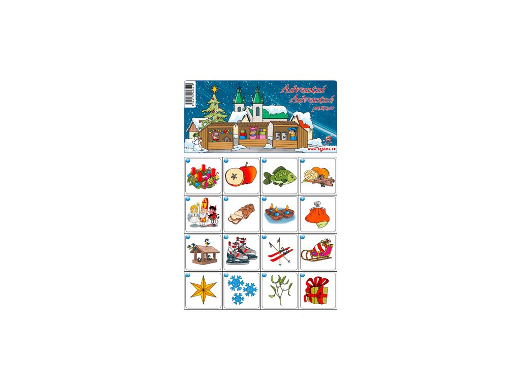 Adventné pexeso - karty sa zamiešajú a rozložia obrázkom smerom dole tak, aby žiadny z hráčov nepoznal rozloženie kariet. Hráč postupne otáča dvojicu kariet obrázkom hore tak, aby obe karty videli aj ostatní hráči. Pokiaľ karty patria k sebe, hráč si dvojicu kariet vezme a otočí postupne ďalšiu dvojicu. Pokiaľ karty k sebe nepatria, otočí ich naspäť obrázkom dole a pokračuje ďalší hráč v poradí. Hra pokračuje, kým hráči nerozoberú všetky karty. Víťazom sa stane hráč s najväčším počtom nájdených dvojíc.Dodatočné parametre