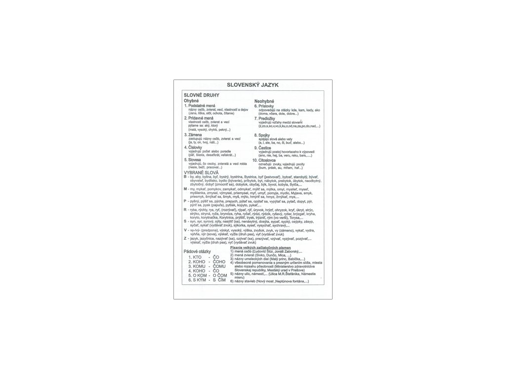 Linkovaná podložka pre školákov, laminovaná, formát A5. Na zadnej strane sa nachádzajú rôzne užitočné nápovedy pre školákov.