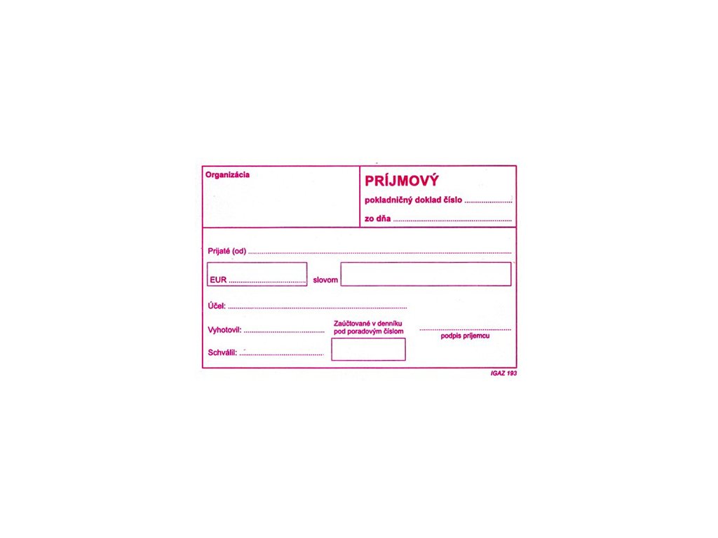 Príjmový pokl. doklad bez DPH A6 (193)