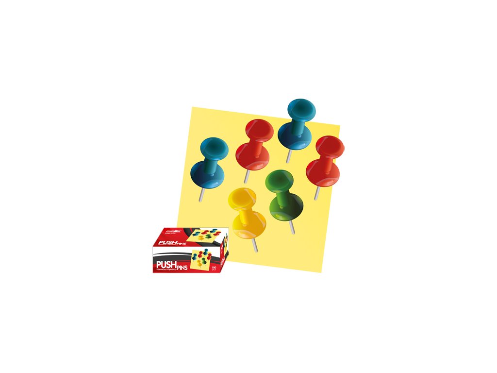 Pripínačiky nástenkové / Poniklované farebné pripináčky do korkových tabúľ s farebnou hlavičkou v tvare vežičky o priemere 7 mm a nožičkou dlhou 12 mm.Dodatočné parametre