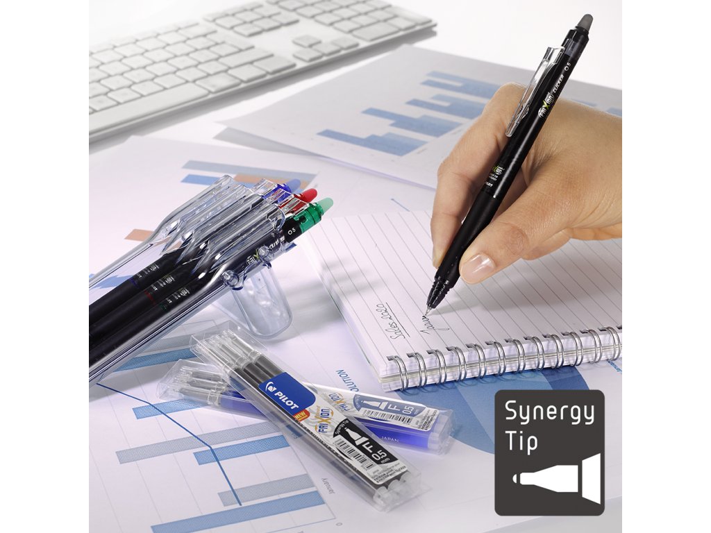 Elegantý dizajn pera PILOT FriXion - farba zelená. Je prepisovateľný a napísaný text je možné vymazať a znovu prepísať na tom istom mieste. Text vymažete trením plastového zakončenia rolleru na papier. Roller má wolframový karbidový hrot a pogumovaný úchyt pre pohodlné písanie. Hrúbka písma je 0,25 mm a priemer guličky 0,5 mm.Dodatočné parametre
