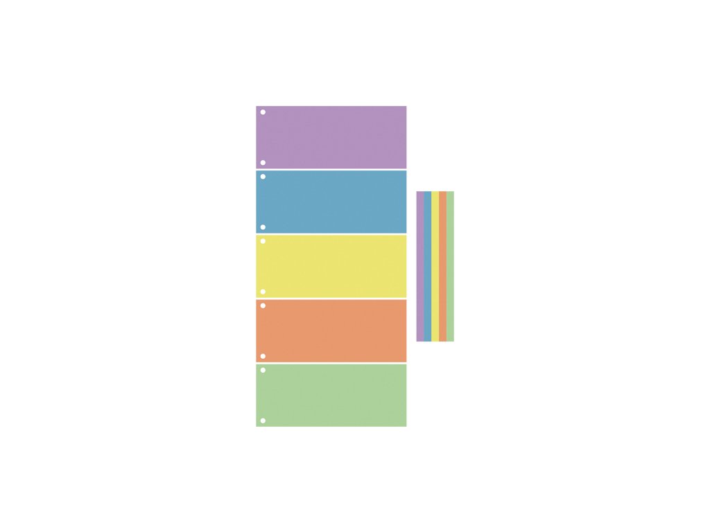 Úzke kartónové rozraďovače s dierovaním umožňujú logicky rozdeliť vaše dokumenty v poradači alebo rýchloviazači. Balenie obsahuje 100 ks (5 farieb / 20 ks).Dodatočné parametre