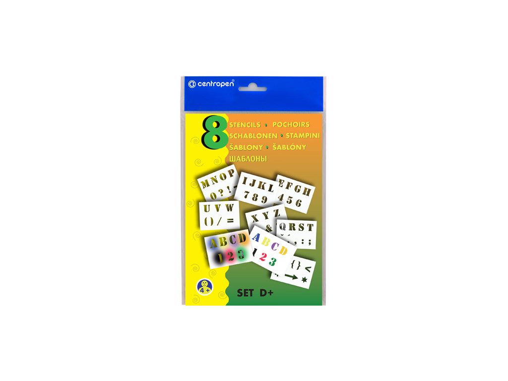 Šablóny papierové CENTROPEN 9996/D Písmena+číslice, sada 8 ks