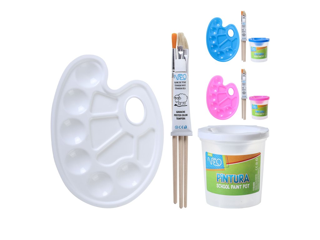 Sada na maľovanie obsahuje paletku, nádobu a 3 ks štetcov (2x plochý, 1x guľatý)Dodatočné parametre