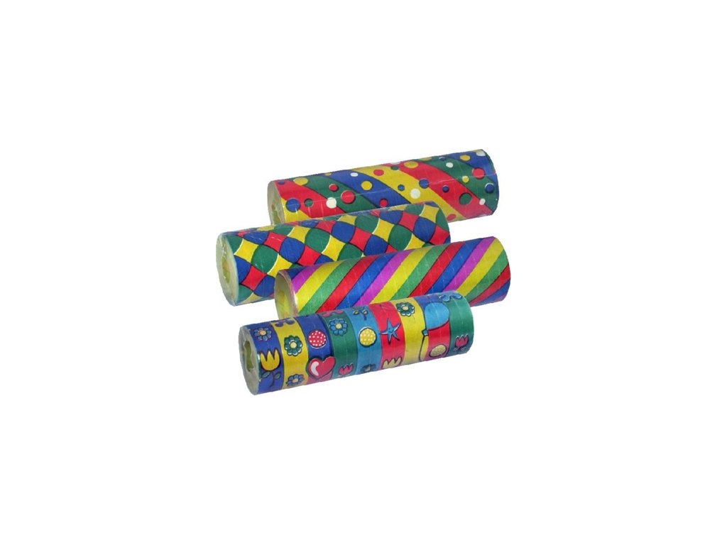 Serpentíny farebné mix; dĺžka 4 m; fóliové balenie obsahuje 18 ks; dodávané jednotlivo alebo v kartónovom balení po 40 ks.Dodatočné parametre