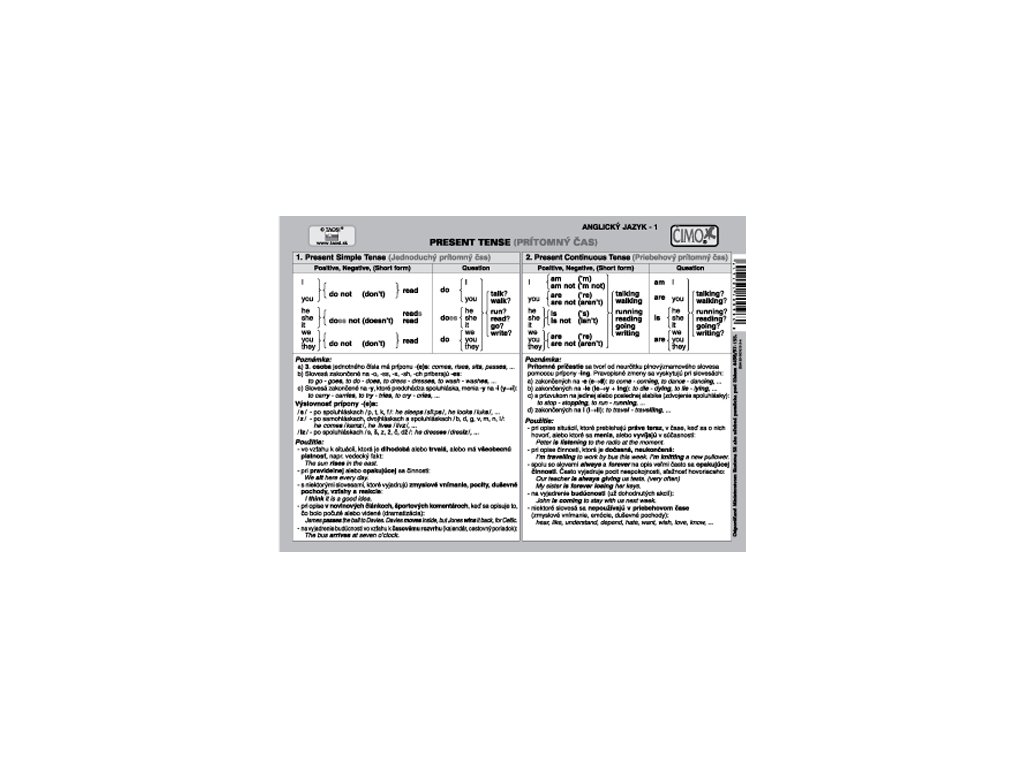 Súbor 15-tich kartičiek - anglická gramatika pre žiakov ZŠ a SŠ. Rozmer: 181x131 mm.Dodatočné parametre
