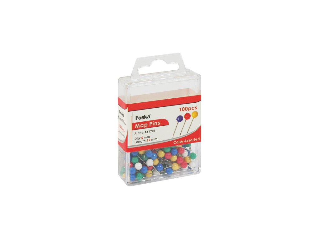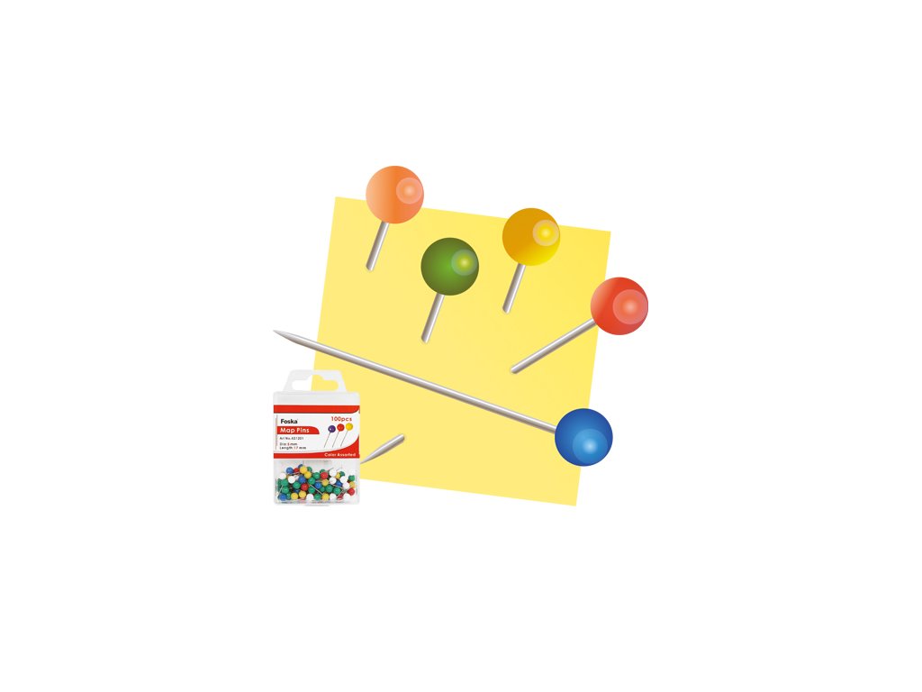 Špendlíky mapové/farebné FOSKA, 17 mm/100 ks, pp box