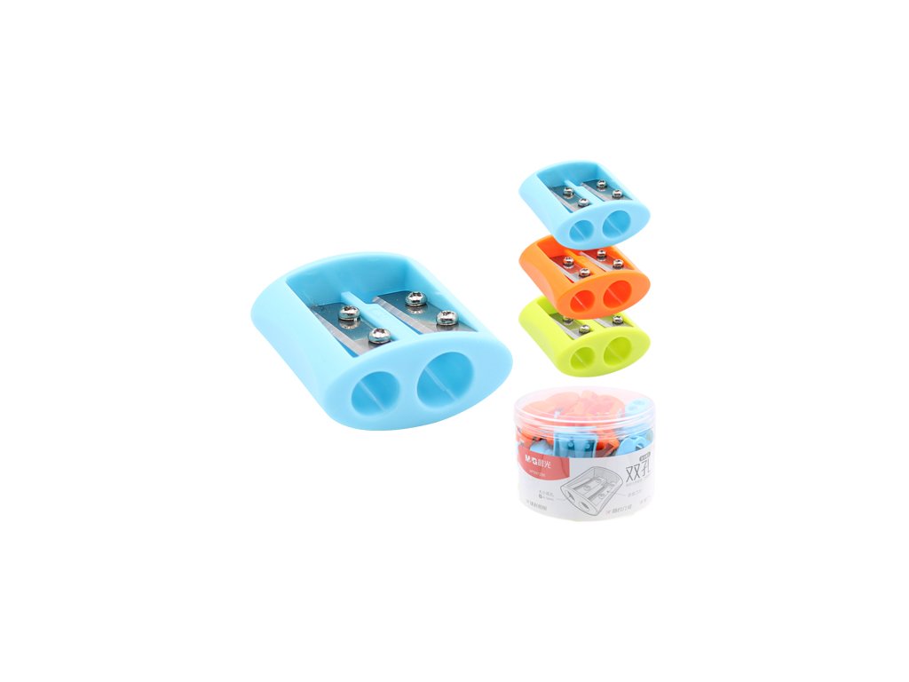 Dvojité plastové strúhadlo bez nádobky. Otvor na klasické ceruzky a otvor na jumbo ceruzky s priemerom 8-12 mm. Dodávané v 3 farebných prevedeniach.Dodatočné parametre