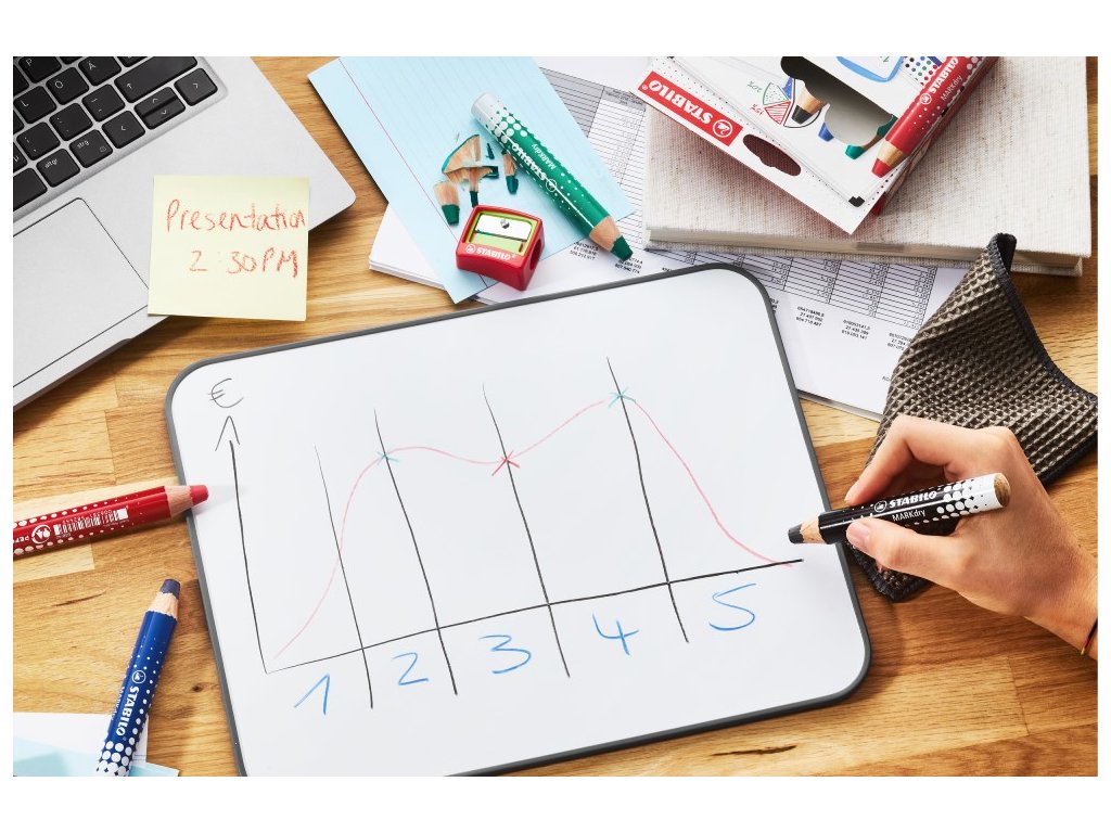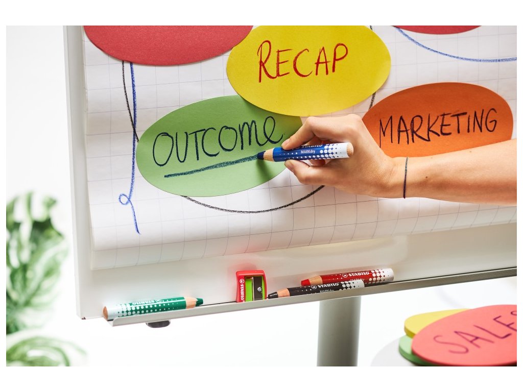 STABILO MARKdry je suchý popisovač s hrubou farebnou tuhou na biele tabule a flipcharty.
