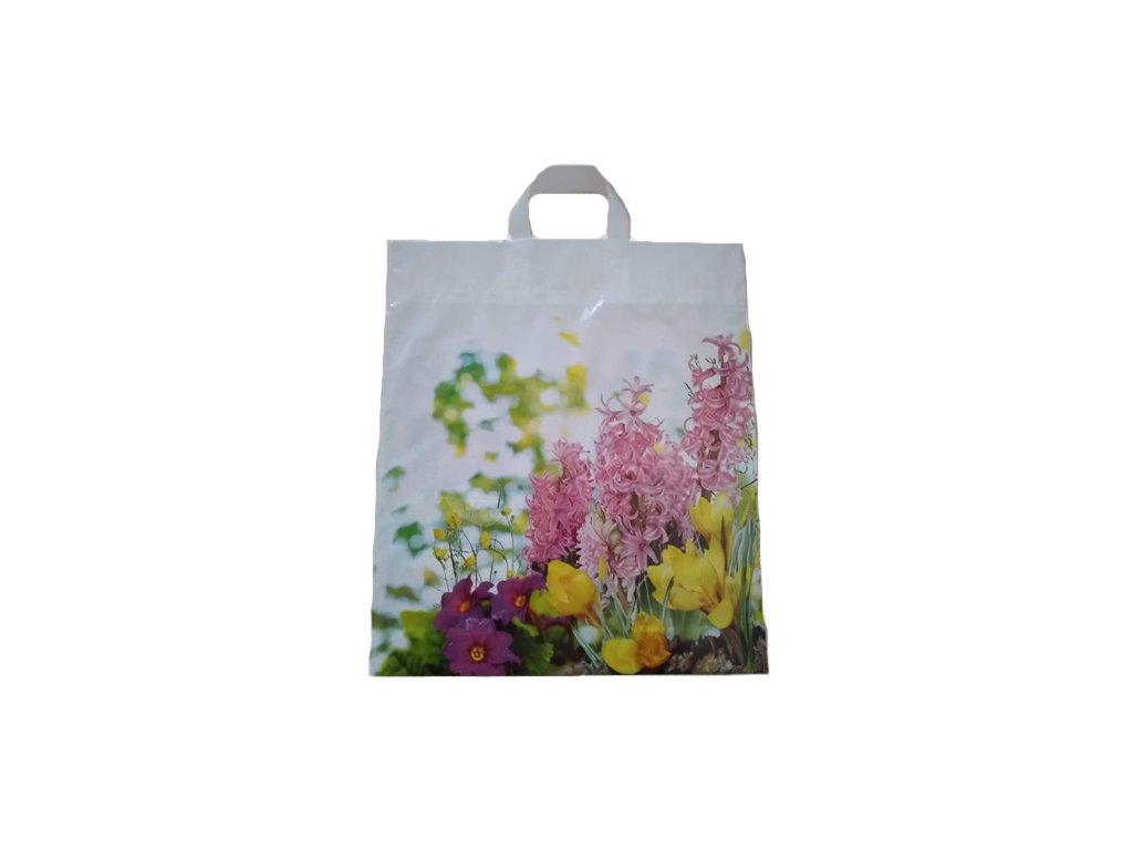 Taška s motívom jarných kvetov, ktoré sú na tématiku veľkej noci. Rozmery tašky sú 410 x 460 mm.Dodatočné parametre