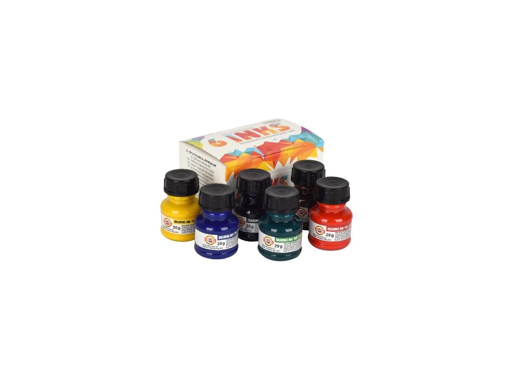 Technický tuš KOH-I-NOOR v praktickej sade obsahuje 6 ks fliaš po 20 g. Tuš je určený na kreslenie, rysovanie a písanie pomocou pier, redisper či technických per. Vyznačuje sa vysokou krycou schopnosťou, stálosťou farby a rýchlym zasychaním.