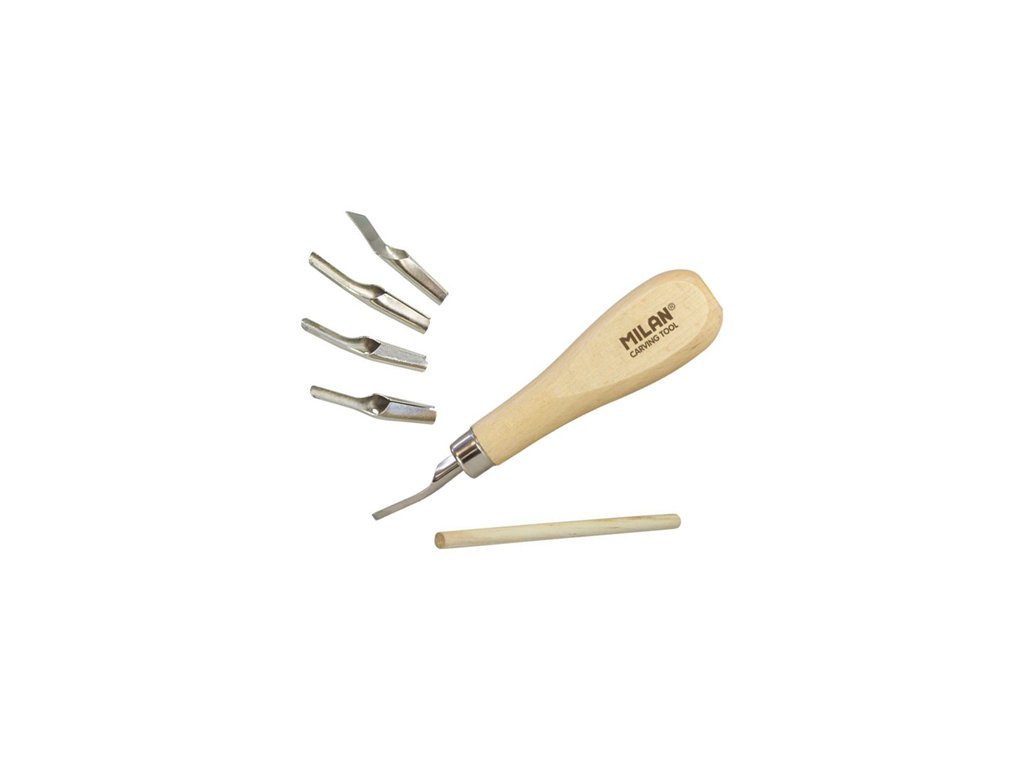 Sada 5 čepelí rôznych tvarov na vyrezávanie vzorov do linolea a bloku tlače. Drevená rukoväť.Dodatočné parametre