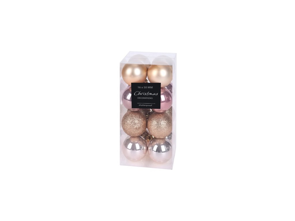 Vianočné gule - sada 16 ks odtiene ružovej, priem. 50 mm, mix lesklá/matná/perle