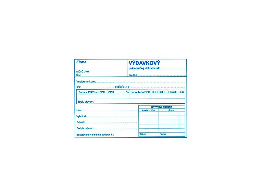 Výdavkový pokladničný doklad s DPH, samoprepis, A6Dodatočné parametre