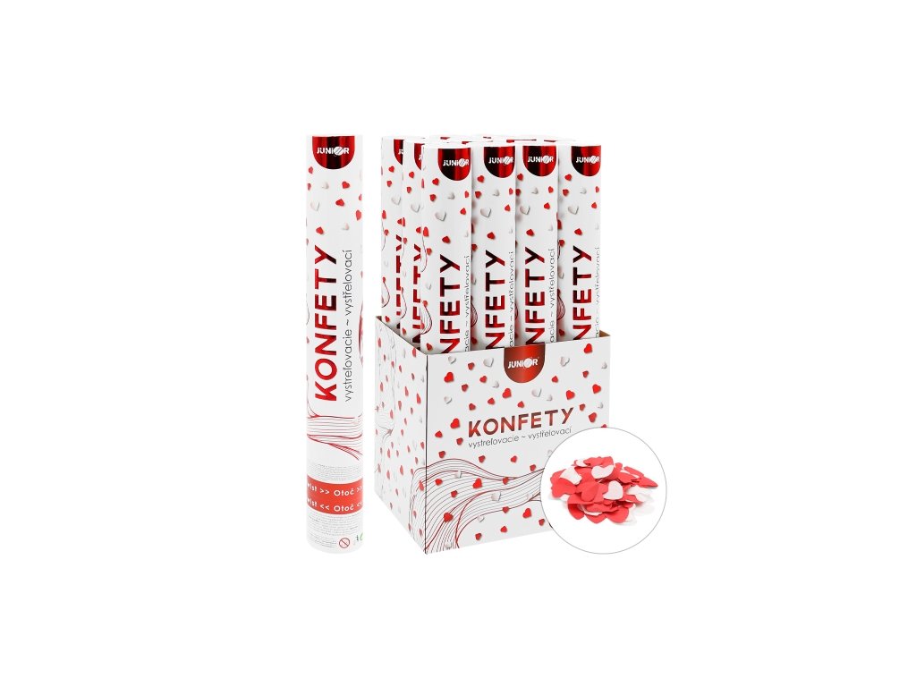 Vystreľovacie párty konfety – serpentíny s motívom červených a bielych srdiečok prinesú nezabudnuteľnú atmosféru na každú oslavu.