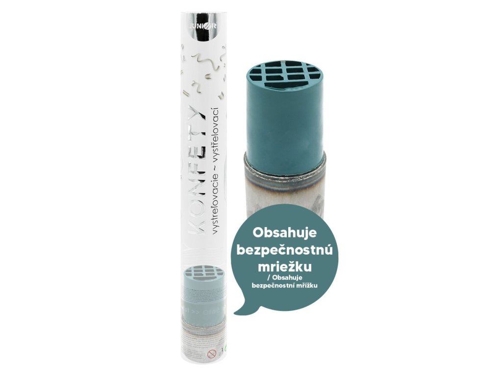 Konfety fungujú na báze stlačeného vzduchu a obsahujú bezpečnostnú mriežku pre bezpečné použitie.