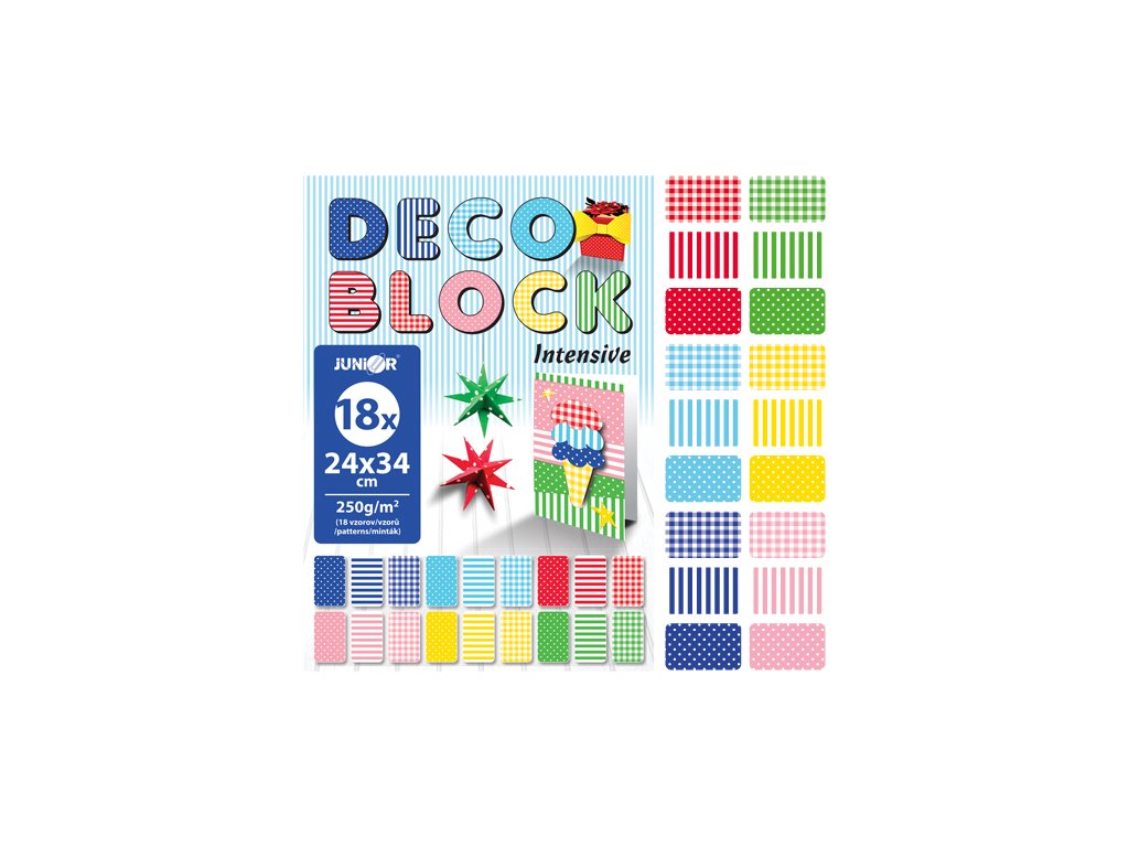 Zložka dekoračného papiera (výkresov) DECO BLOCK 18 farieb /18 vzorov, 250g/m2