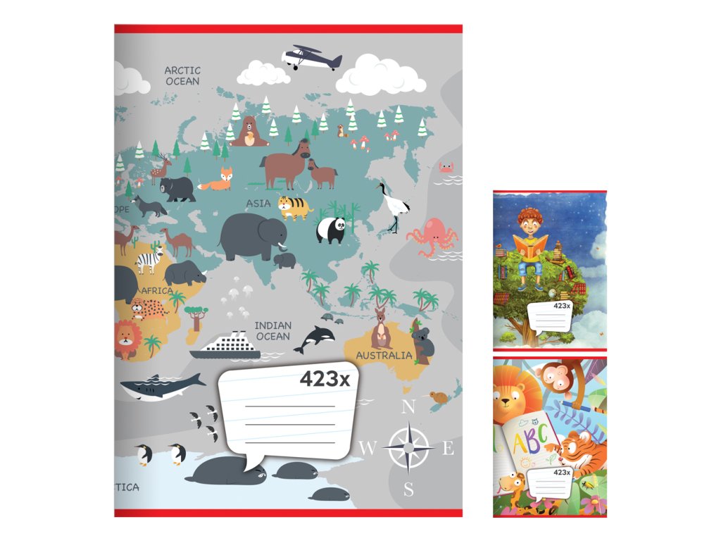Školský zošit, vyrobený z bieleho bezdrevného papiera, formátu A4 s počtom listov 20. Zošit so špeciálnou liniatúrou, ktorú tvoria 2/3 linajky 12 mm pre písanie textu a 1/3 strany je čistá pre kreslenie obrázkov. Zošit je určený predovšetkým pre žiakov na 1.stupni základných škôl.Dodatočné parametre