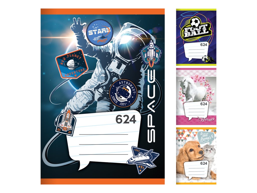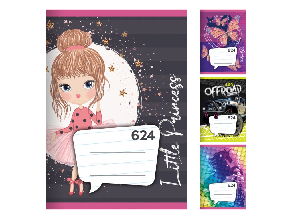 Školský zošit je vyrobený z bieleho bezdrevného papier. Jeho formát je A6. Počet listov zošitu je 20 a vo vnútri je linajkový. Liniatúra je 8 mm.